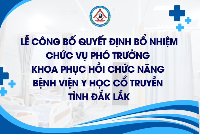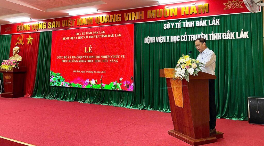 Chiều ngày 23 tháng 10 năm 2025, Bệnh viện đã long trọng tổ chức Lễ công bố Quyết định bổ nhiệm chức vụ Phó Trưởng khoa Phục hồi chức năng của Bệnh viện Y học cổ truyền tỉnh Đắk Lắk, giai đoạn 2025 – 2030.